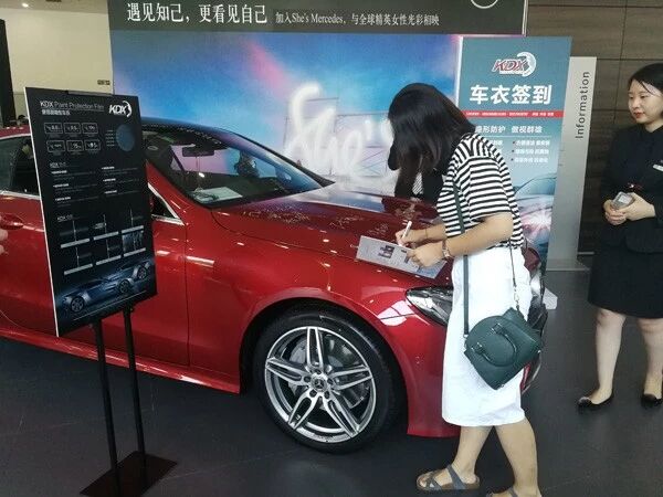 充满创意的签到,直接在贴了KDX隐形车衣的奔驰车上签名
