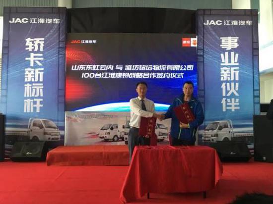 在活动现场,山东东虹云内与潍坊铭远物流有限公司签署100台江淮康铃战略合作。与此同时,现场团购活动更是热闹非凡,江淮轿卡X5在潍坊站掀起抢购热潮。