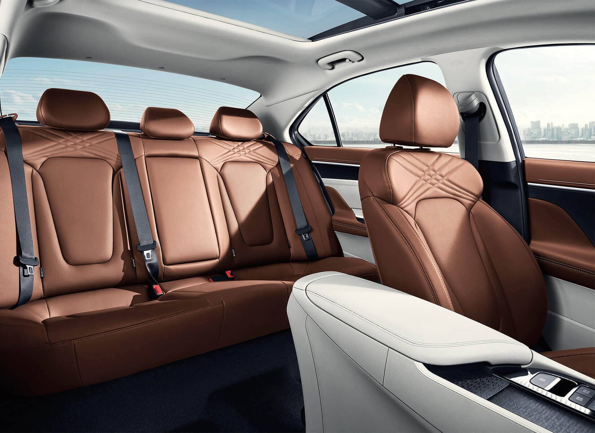 同时,配合全新一代名图1815mm的车宽,全新一代名图的横向空间也同样优秀,后排座椅即使是3个体型相当的成年人坐满,也丝毫不会感觉拥挤;头部空间也是衡量空间的另一项重要的指标,全新一代名图通过高挑的车身和座椅角度设计,在头部空间上也具有相当出色的空间表现。